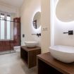 With its spacious interiors, this home is ideal for groups of friends, colleagues, or large families. The living room is the heart of the home, featuring a cosy sitting area with a Smart TV and a dining space with a dining table for 8 people. Fast free Wi-Fi is available throughout the apartment, making it ideal for those who wish to work remotely. Large windows fill the apartment with natural light, creating a welcoming atmosphere. However, we recommend always closing the windows facing the street before leaving the house. The kitchen is fully equipped with everything you need: fridge, induction hob, microwave oven, dishes and cutlery, wine glasses, kettle, and a coffee machine. You'll find two modern bathrooms, both equipped with showers, hairdryer, and a courtesy kit with soaps and shampoos, for a comfortable stay from the very first day. Rounding out the amenities, the apartment offers both heating and air conditioning, ensuring comfort year-round. The apartment features a charming balcony with a garden view, accessible from Bedroom 1 - perfect for enjoying a relaxing moment outdoors.