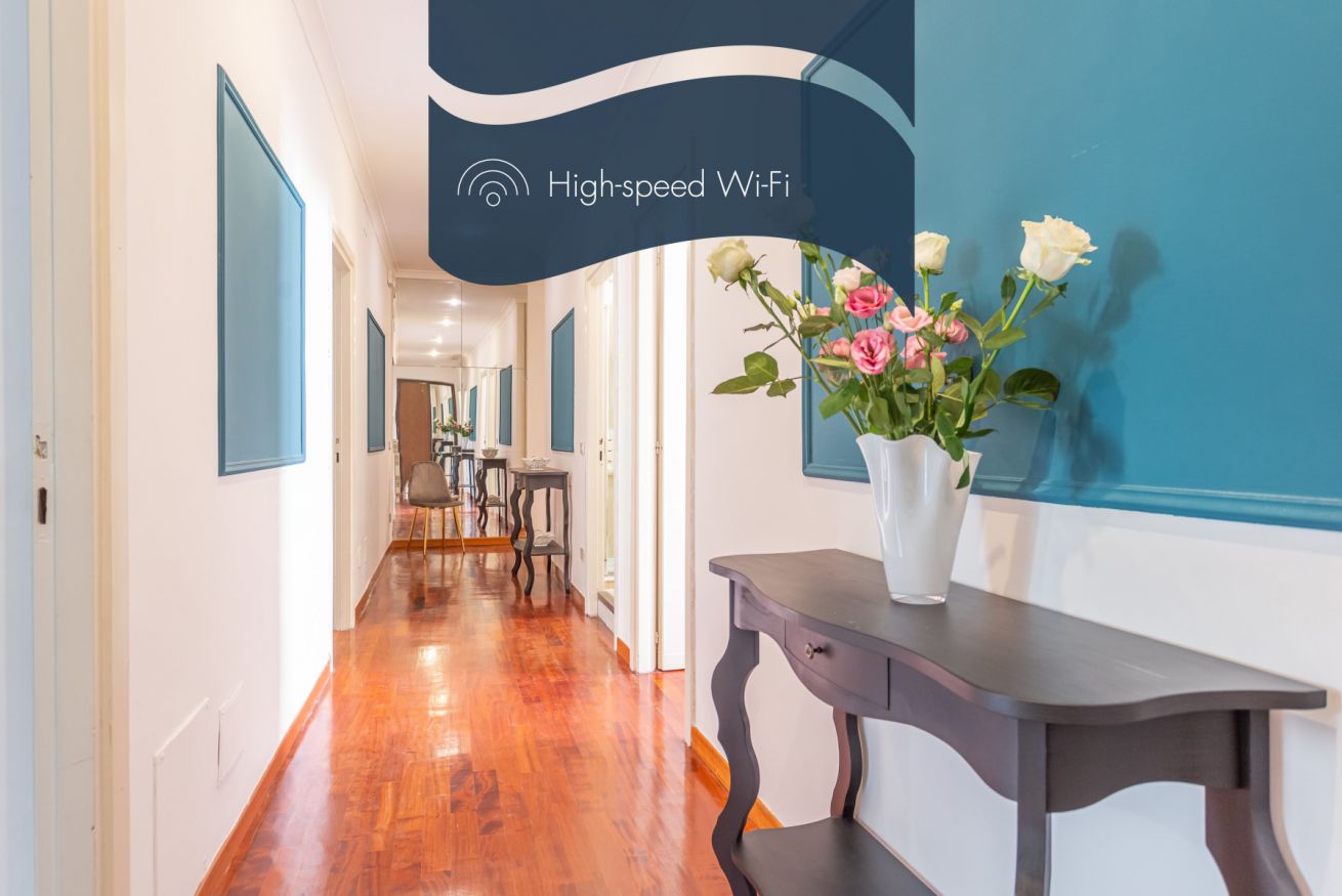 The apartment is located on the third floor of a prestigious building in Via Veneto and can accommodate up to 10 people. We would like to inform our kind guests that the apartment is located on a busy and noisy street, like many pnes in the center of Rome.