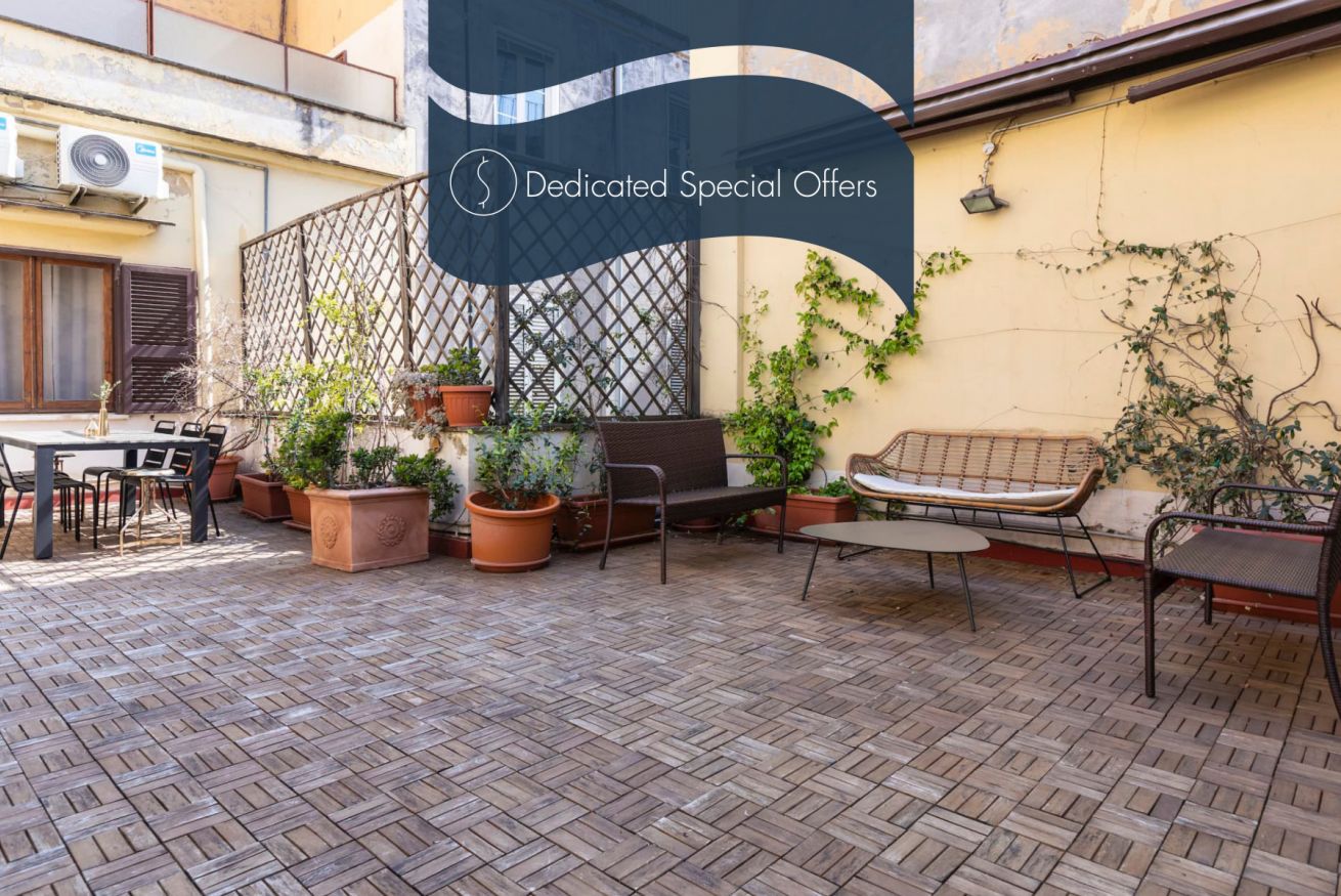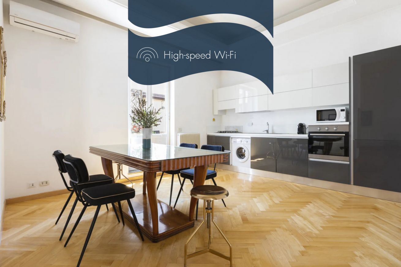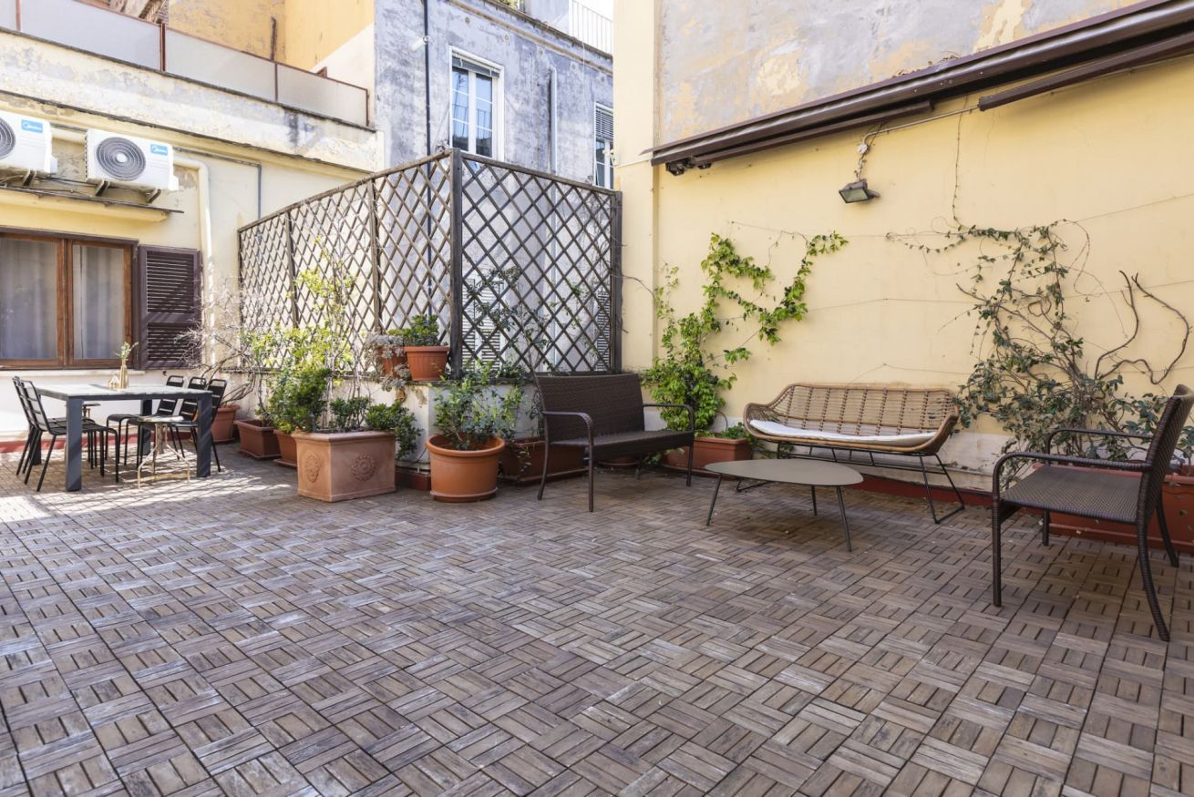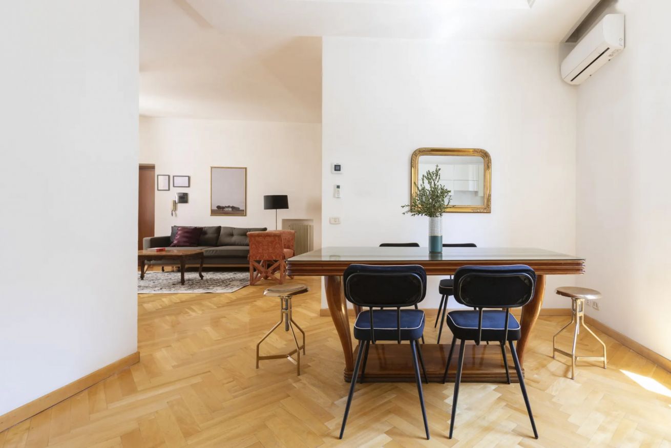 The standout feature of Ginevra is its large outdoor terrace: it's rare to find such a spacious courtyard in the city center. The Daplace Team has made it fully available to guests, furnishing it with armchairs, a small sofa, a large dining table, and some plants. Relax and dine with friends and family in this beautiful corner of tranquility and well-being.