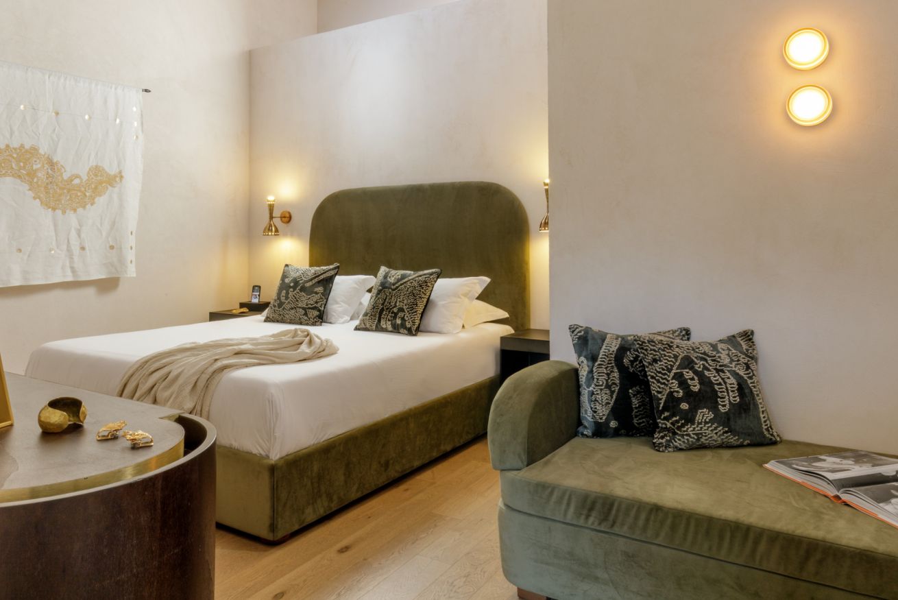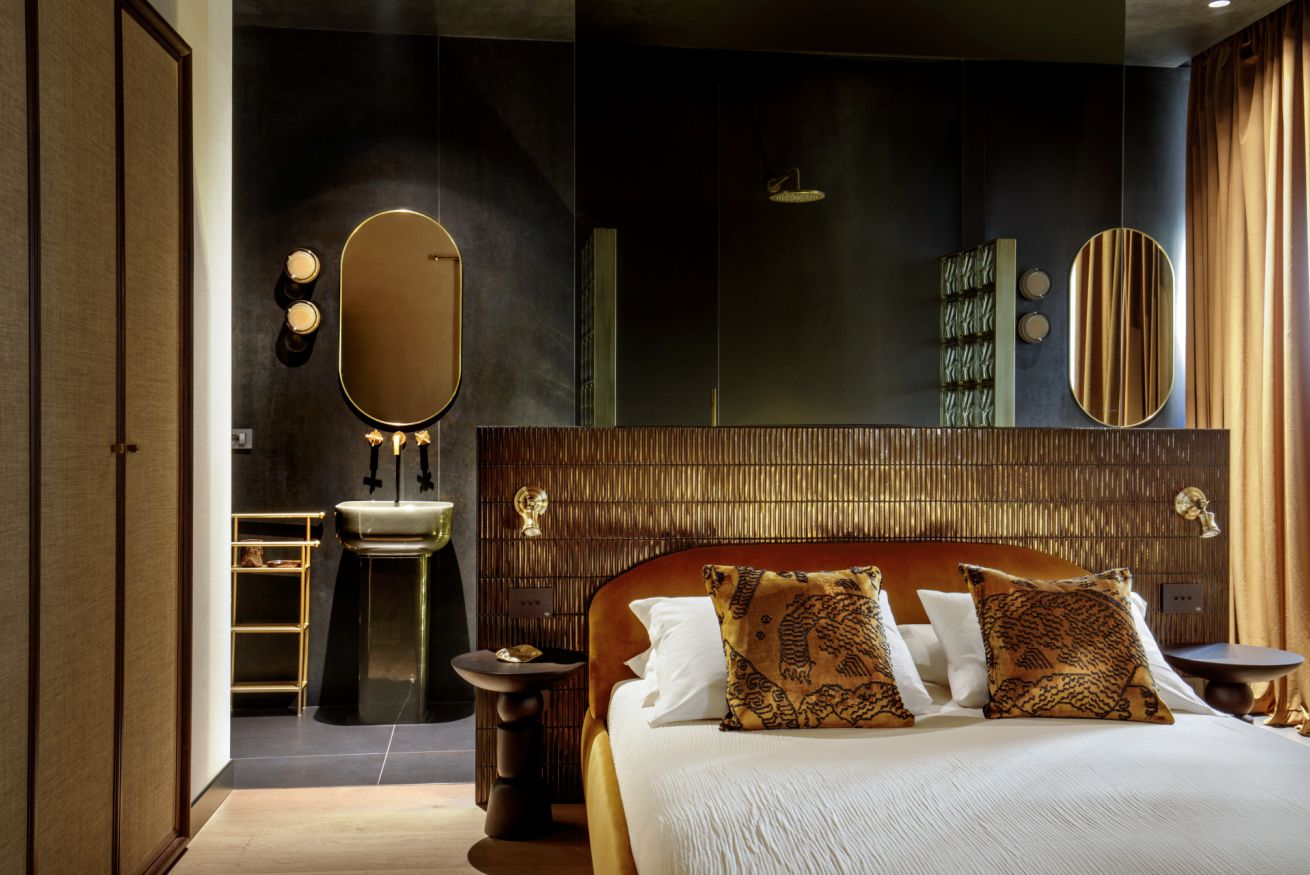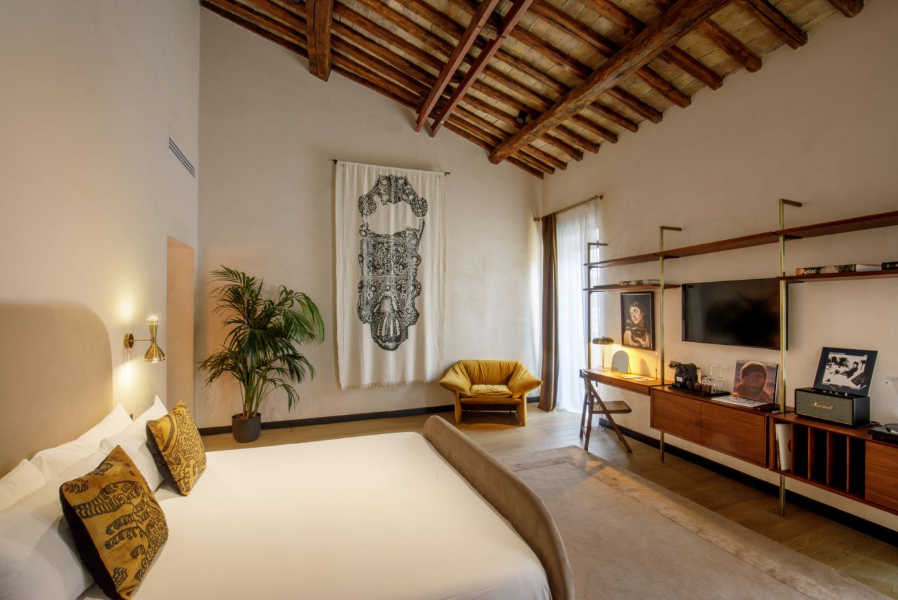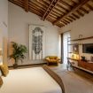 Tre suites si affacciano internamente, mentre le altre tre guardano verso l’esterno, regalando un suggestivo scorcio del Colosseo. La suite all’ultimo piano, con affaccio esterno, si distingue per finiture di livello superiore, offrendo un’esperienza ancora più esclusiva.
