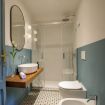 Both bathrooms are modern, stylish, and renovated, each with a walk-in shower and elegant finishes.