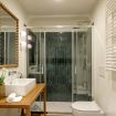 The two main bathrooms, both featuring showers, have been recently renovated and boast a modern, elegant design. One is located next to the living room, while the other is inside Bedroom No. 2. There is also a convenient third half-bath on the terrace.